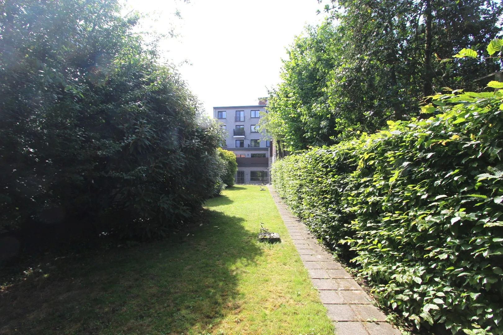 Achter het terras is er een tuin met toegang naar een garage voor 2 wagens met opslagruimte. De garage met tuin kan worden bijgehuurd aan 150 euro per maand.