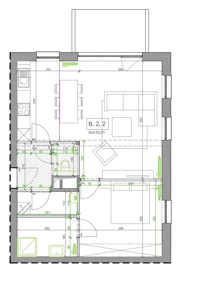 Dit appartement is ideaal voor wie houdt van rust, licht en een groen uitzicht. Hier woon je op de tweede verdieping van een recent gebouw (2021), in een jonge buurt aan de rand van de stad.