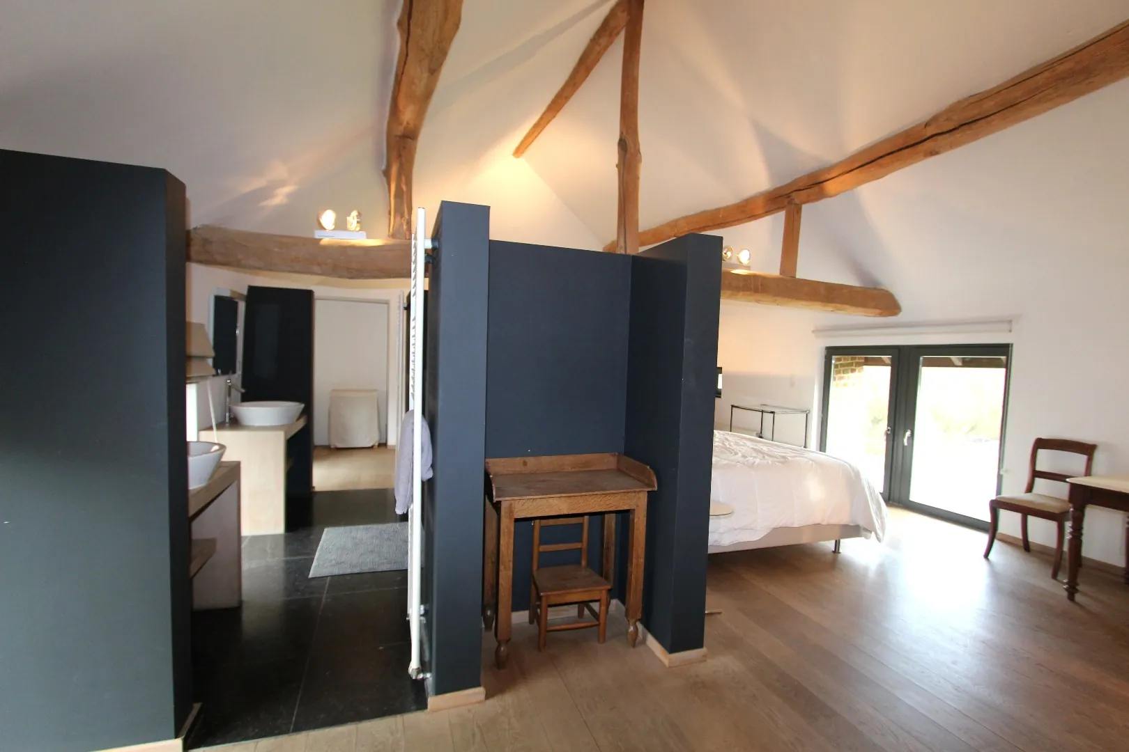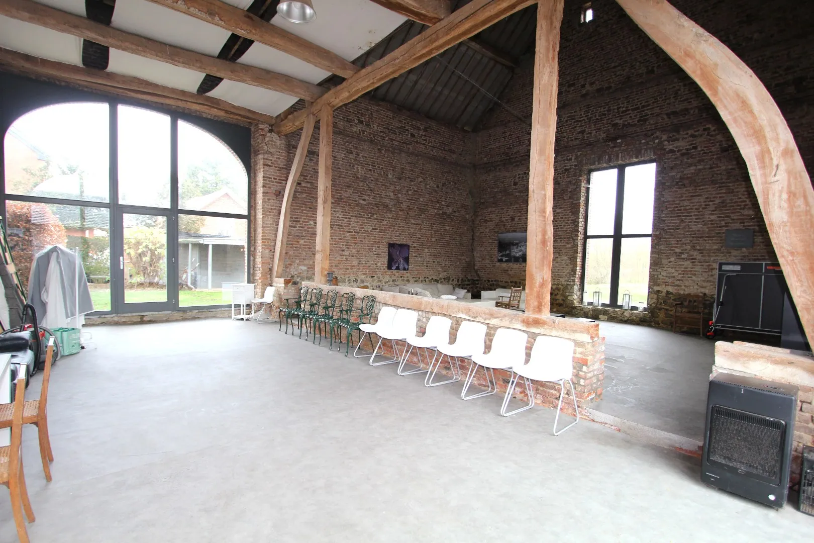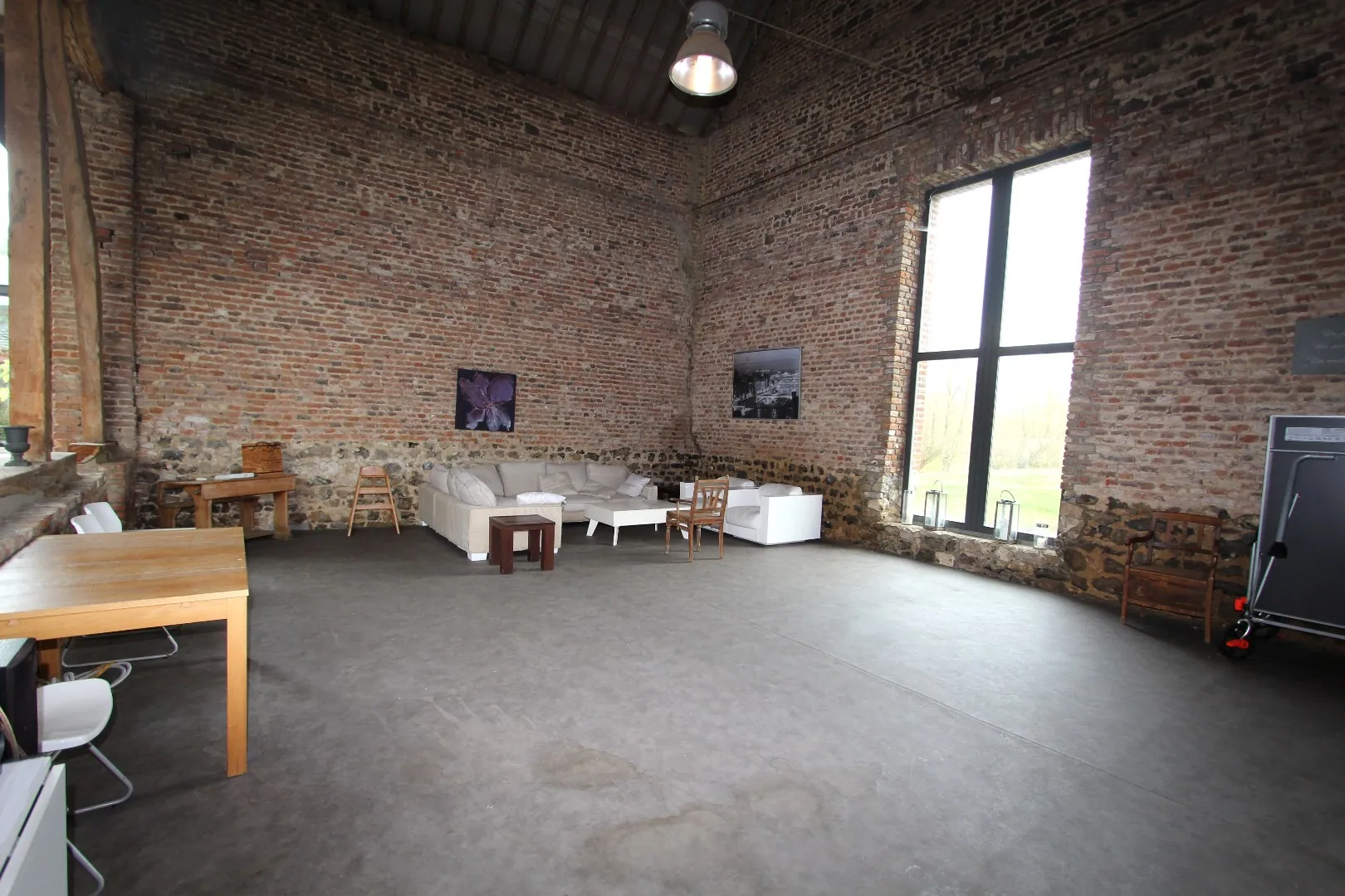 Verder een ruime binnenkoer met enkele stallen als opbergruimte. Aan de zijkant een grote parking.