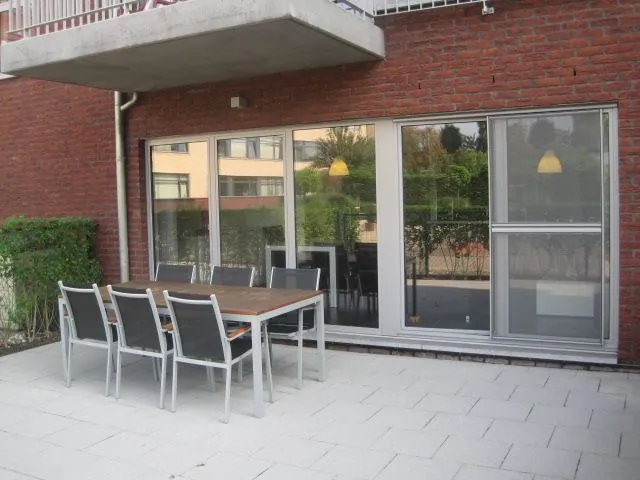 De woonruimte heeft een kamerbreed schuifraam naar het supermooi zonneterras, volledig afgesloten en met toeganghek naar de gemeenschappelijke binnentuin !