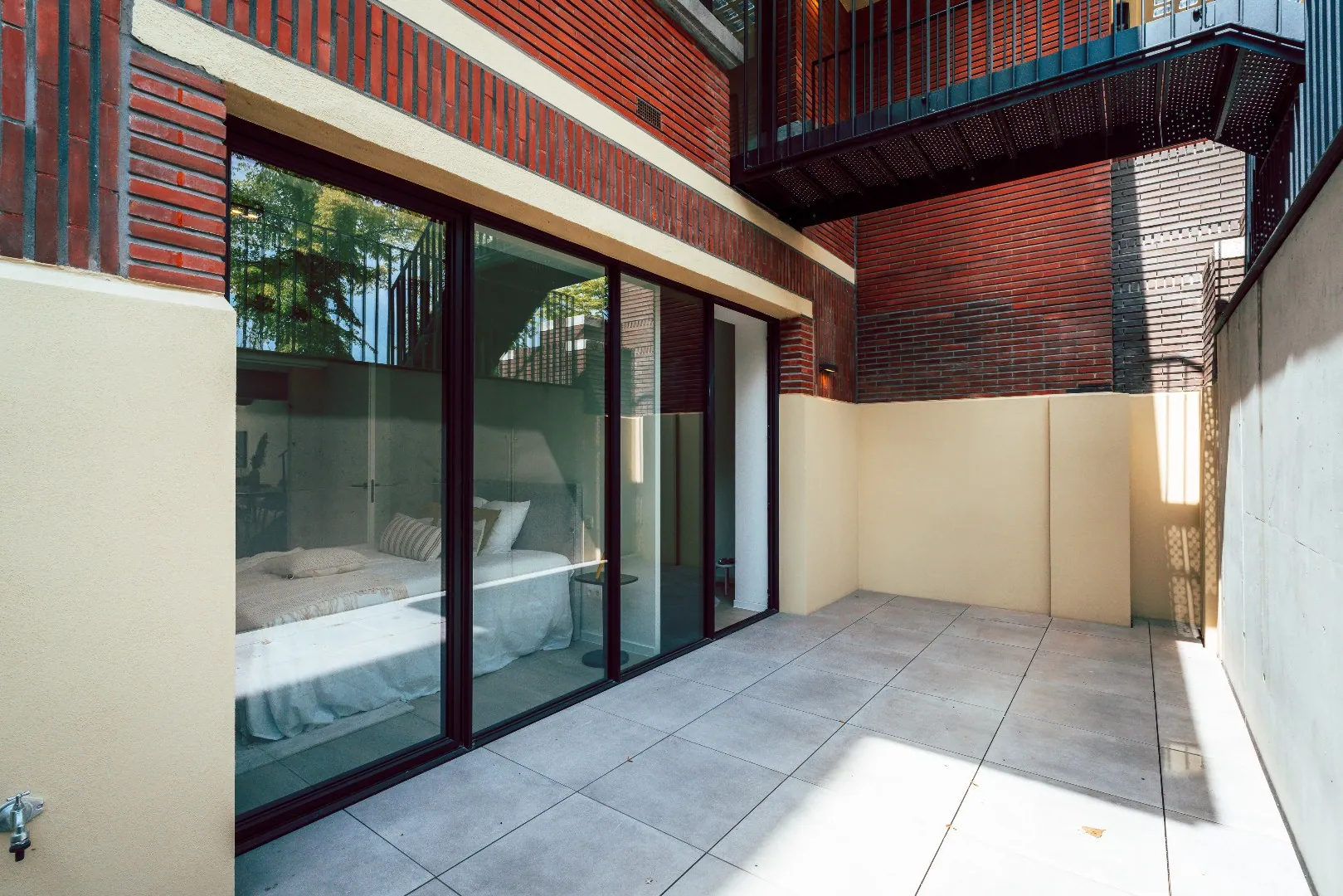 Uniek aan deze appartementen is de buiten-oppervlakte: een klein tuintje met terras aan de woonkamer (oriëntatie namiddag- en avondzon), een engels terras bij de slaapkamers én een derde terras zijde paradeplein (voormiddagzon) geven samen maar liefst 100 vierkante meter buitenruimte!