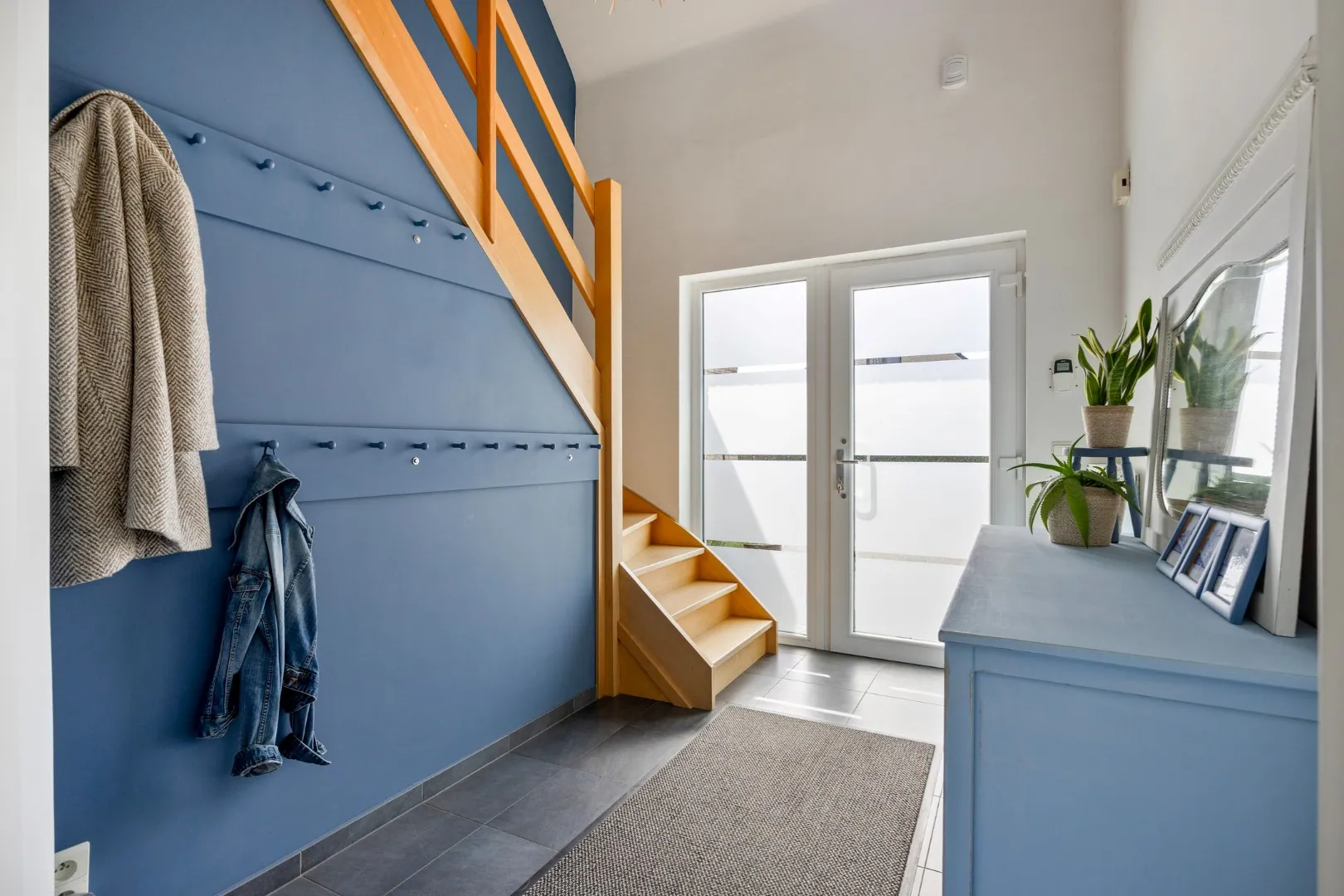x inkomhal met gastentoilet, vestiaire en trap naar de verdieping;
