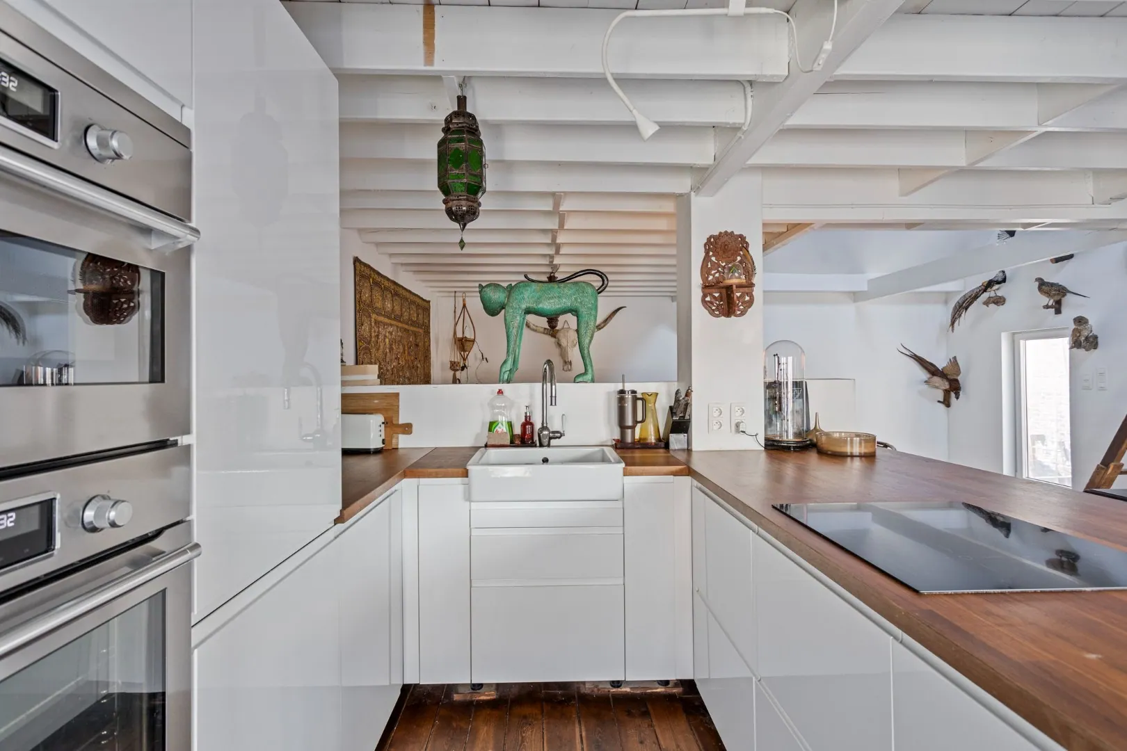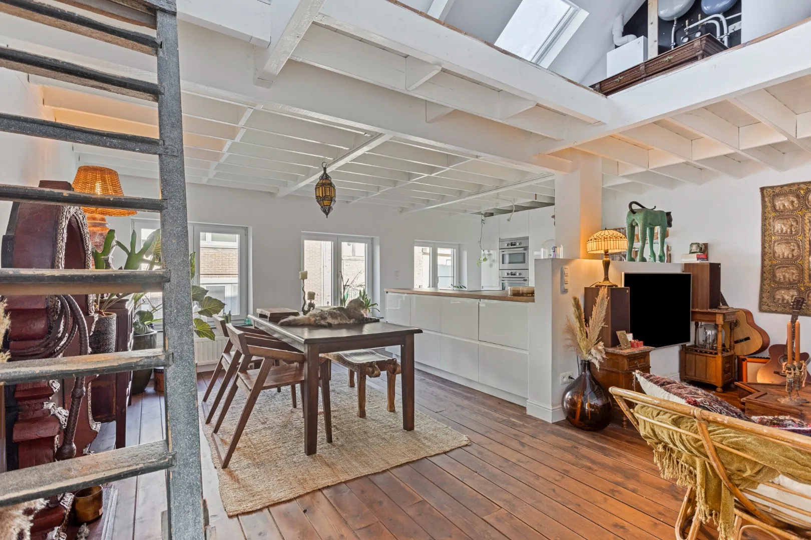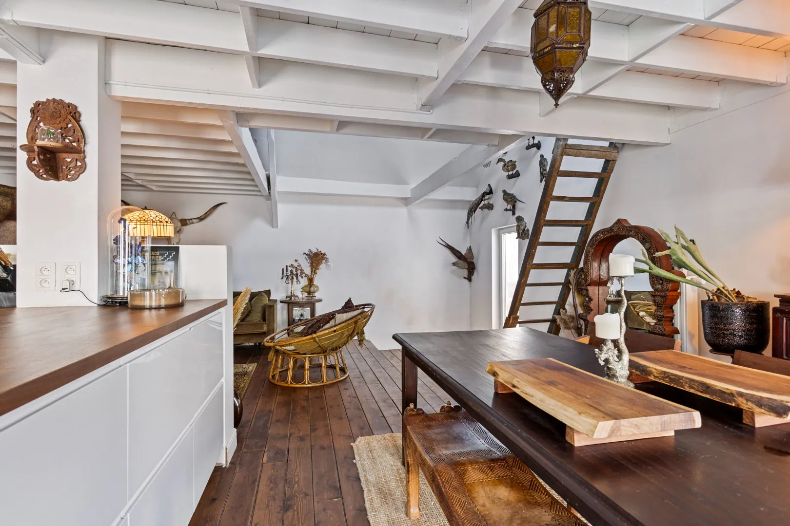 x Mooie, lichtrijke woonkamer met ingerichte keuken en mezzanine.