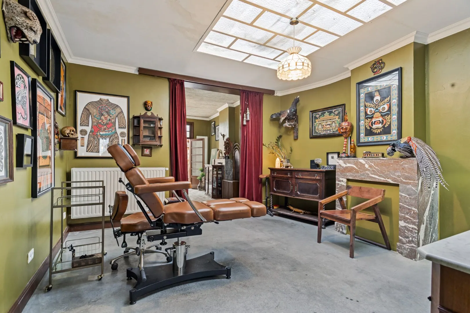 Achteraan is er toegang naar de aanpalende en afsluitbare garage (16,5 m²) met inrit via de Grote Markt.