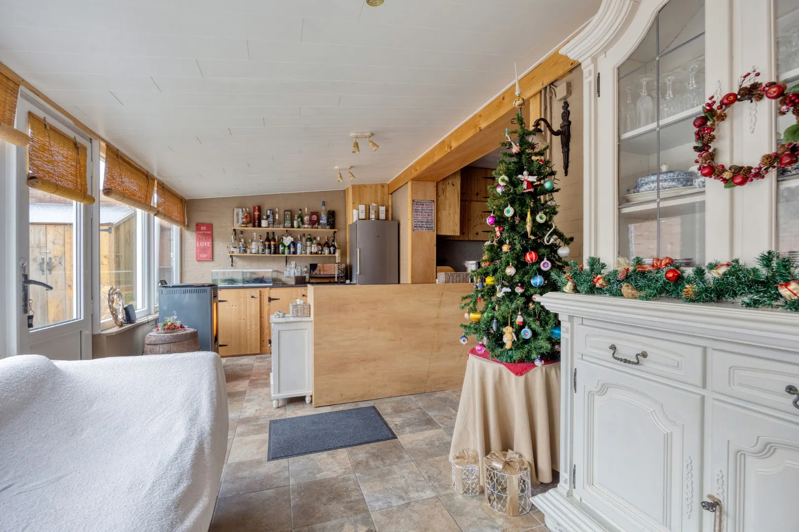 x nieuw ingerichte keuken die overgaat in de gezellige veranda;