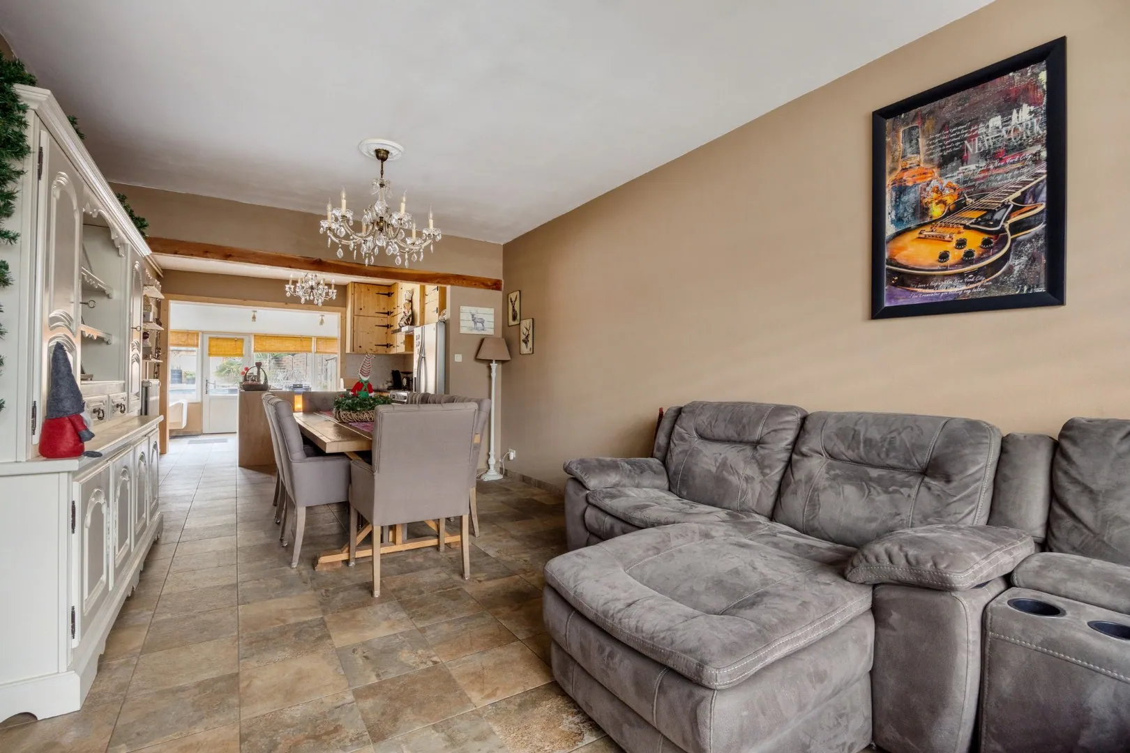 x ruime woonkamer met salon en eetplaats;