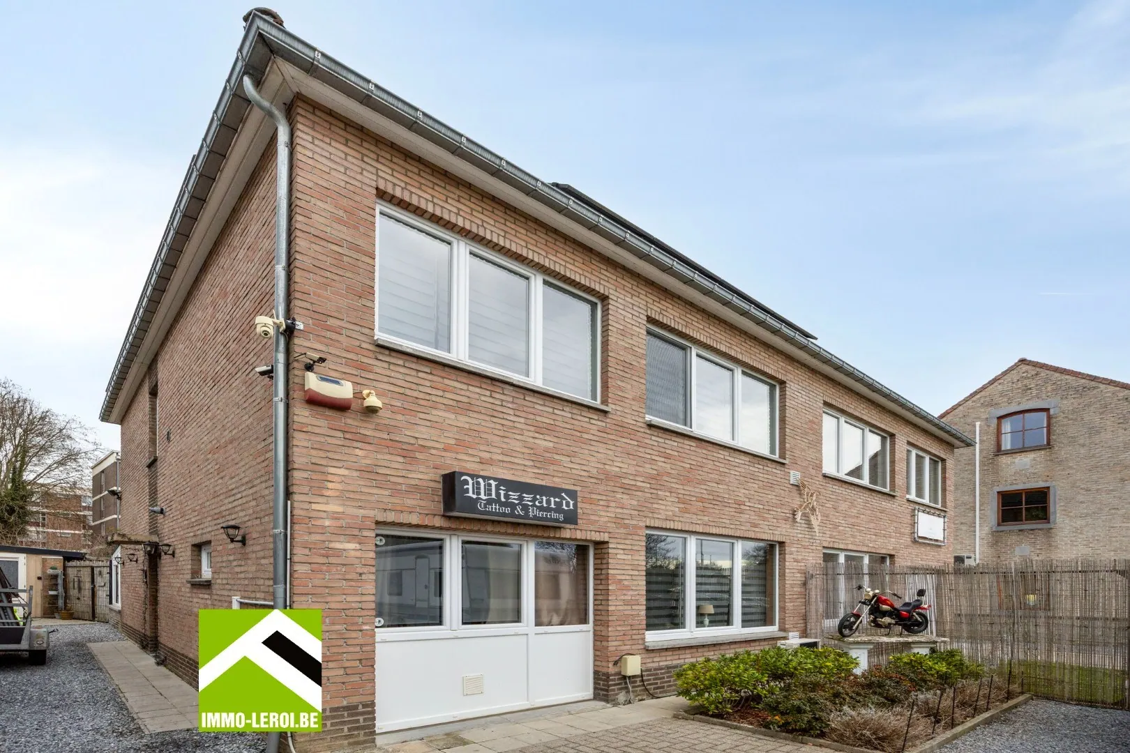 Ruime parking voor de woning en inrit naar achteren. De garage wordt momenteel gebruikt als werkruimte, maar is makkelijk terug te gebruiken als garage, evenals de achtergelegen werkplaats.