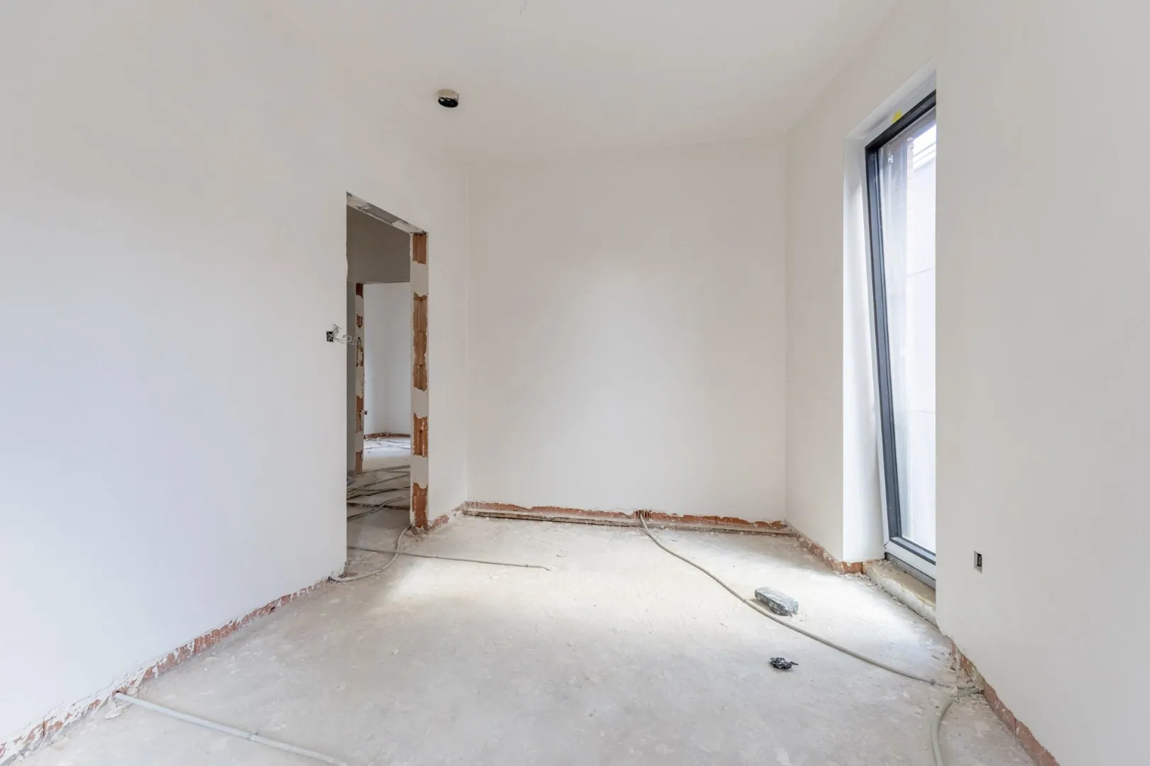 De woning wordt verkocht in haar huidige staat. Momenteel is de vloer al geïsoleerd en de muren gepleisterd, maar voor een meerprijs van 8.100 euro wordt ook de vloerverwarming en chape al voorzien. Zo kan u de verdere afwerking helemaal naar eigen smaak en stijl realiseren.