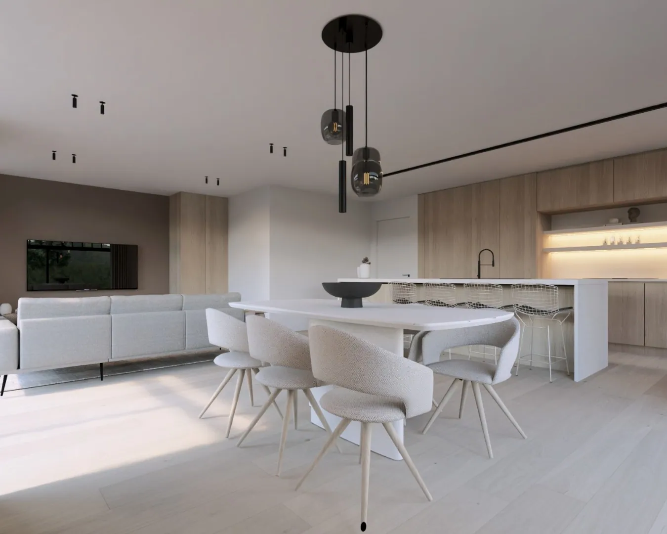 Grote ramen brengen het licht en de natuur naar binnen, authentieke materialen zoals hout en baksteen geven warmte en karakter, terwijl moderne afwerking en energiezuinige technieken zorgen voor duurzaam en comfortabel wonen.